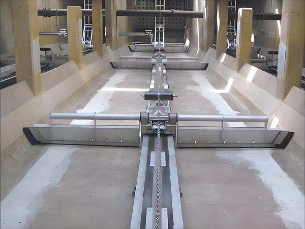 ‌返程过程‌:当台车到达位置完成一个刮泥过程后,刮泥台车上的触杆触动限位钢索,驱动装置反转台车返程。在返程的同时,成垂直竖立的刮泥板翻转成与池底保持平行‌1